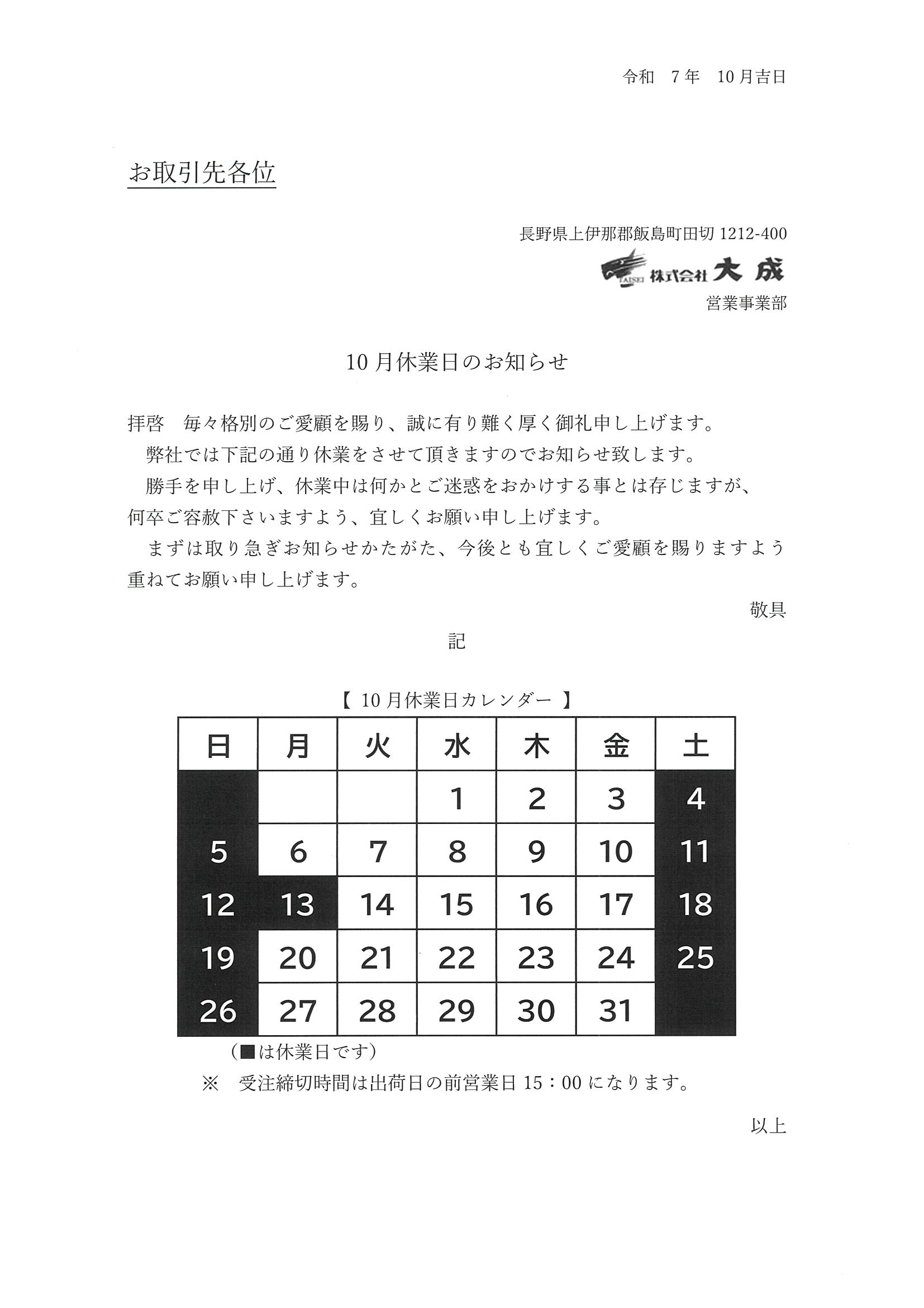 休業期間中は何かとご迷惑をお掛け致しますが、宜しくお願い致します。